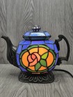 Tiffany Style Teapot Lamp Stained Glass Cheyenne Tea Kettle Accent Light Vtg