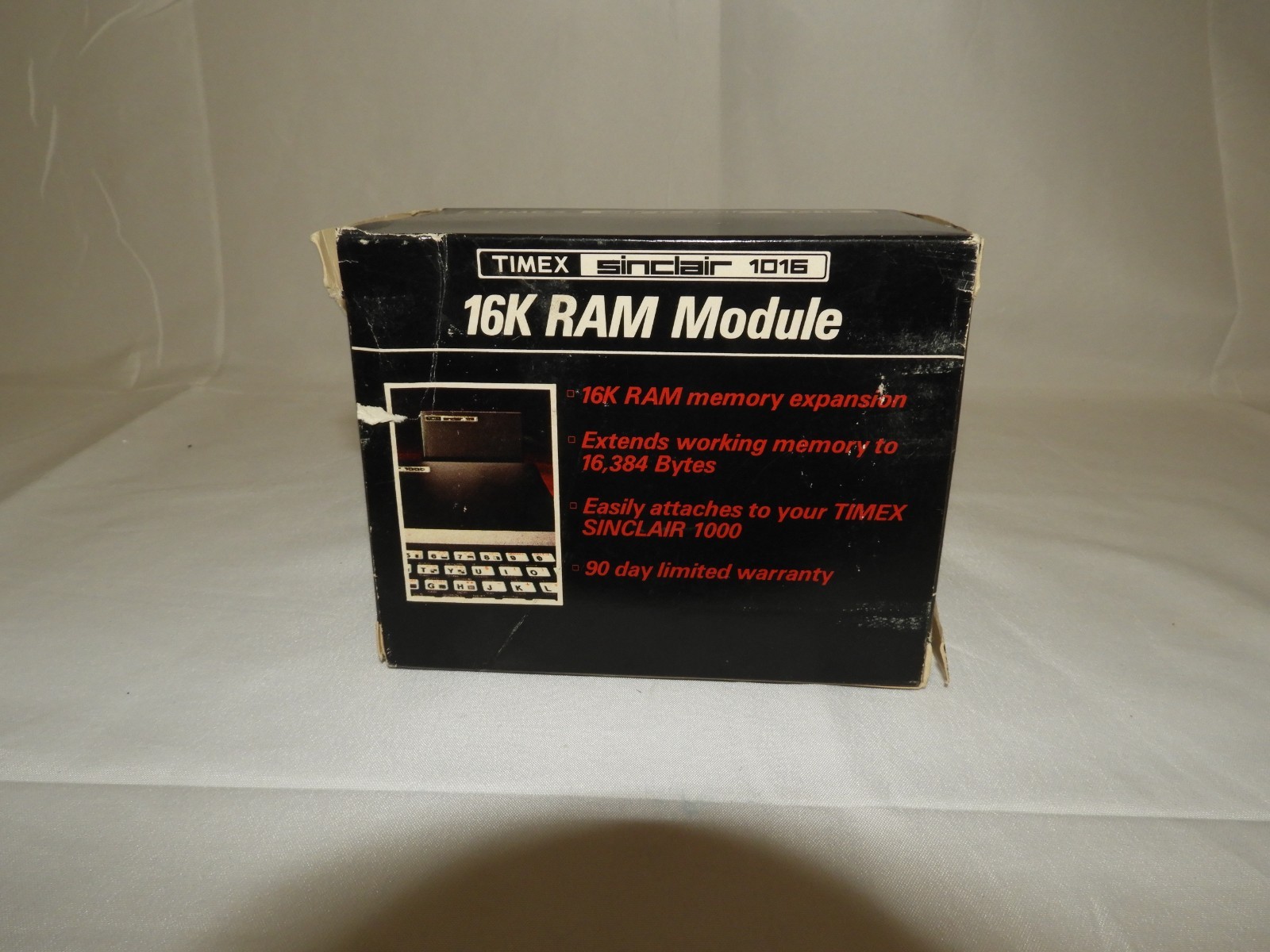 Timex Sinclair 1016, 16K RAM module, Timex Sinclair memory expansion, vintage computer RAM, Sinclair 1000 accessory, retro computing hardware, Timex Sinclair box, vintage computer collectible, 1980s computer part
