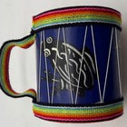 Hand Painted Wood Folk Art Hand Drum Bird Deer Frog Rainbow Trim southwestern
