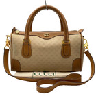 Auth Gucci Old Micro GG PVC Leather Beige 2Way Boston Bag W/Dustbag NS041170
