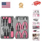 11pc Pink Womans Compact Crafts & Home DIY Repair Hand Tool Kit Set with Plie...
