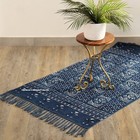 Indian Mat 3x5 Ft Carpet Indigo Blue Rugs Cotton Dhurrie Hand Block Printed Dari
