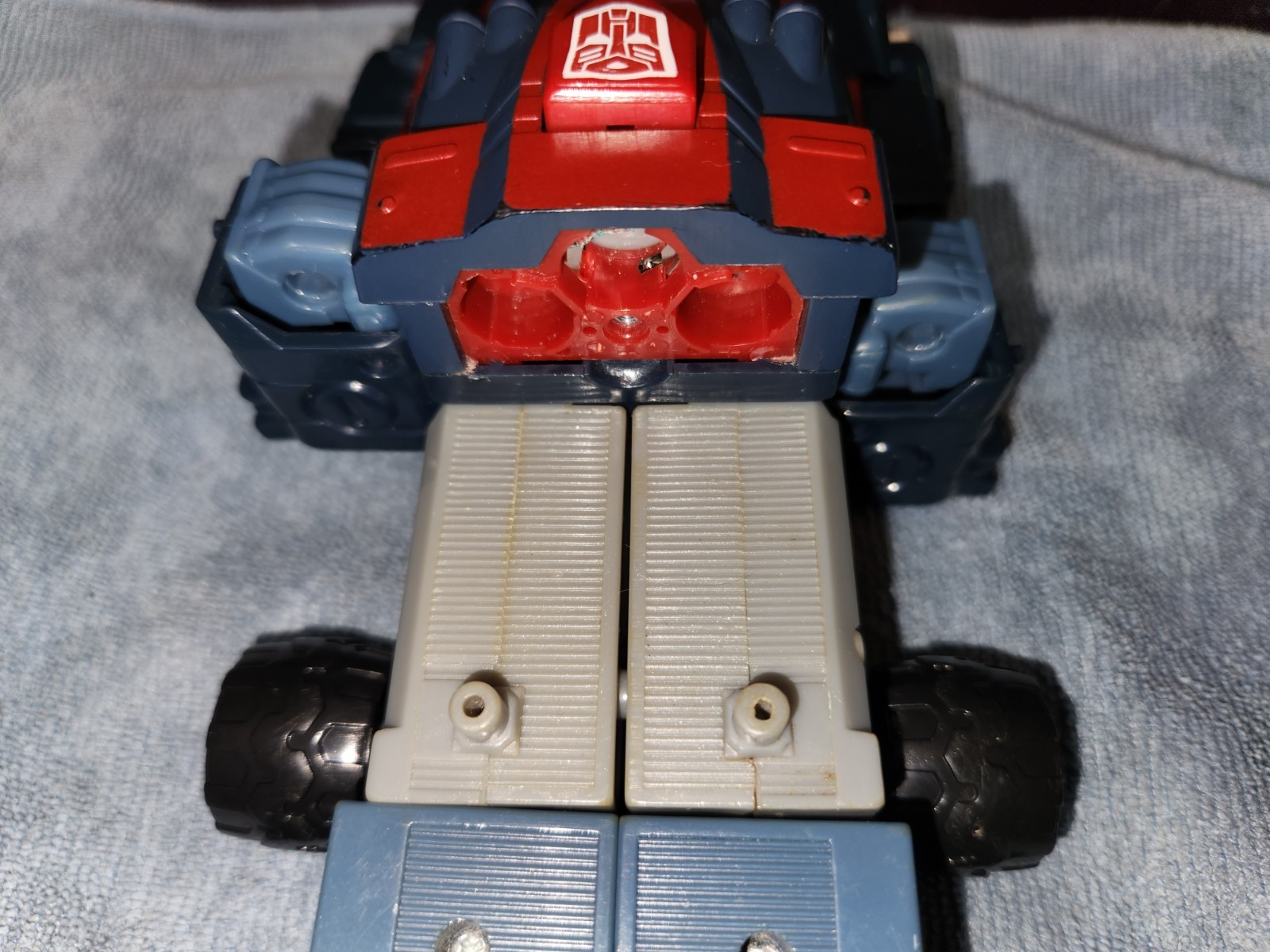 Parts are in good used condition with some wear. Electronics are in working order. If you have a functional trailer, when you separate the main robot shoulders from the truck mode, it will trigger auto transformation of the trailer to battle station.