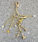 Travelers Journey Chunky Key Chain W 9 Charms Airplane Bus Earth Liberty Paris