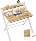 Foldable Computer Desk with Monitor Shelf Small Space Workstation Oak Finish