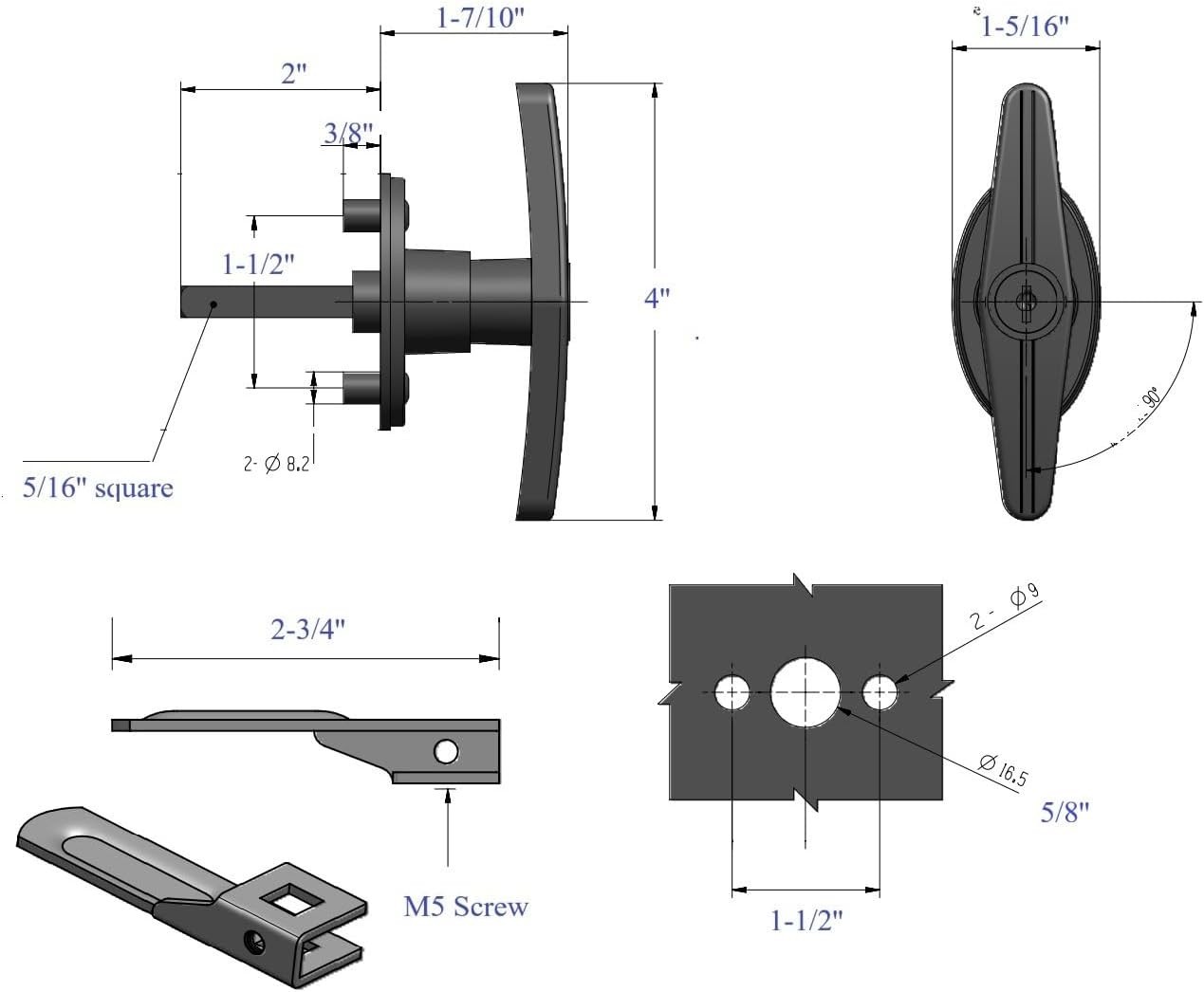 - Package Includes: two t-handles (clockwise and counter clockwise), two dust covers, two cam plate spacers, two steel t-handle cams (left and right) and four keys and four screws.