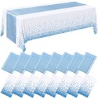 12 Pcs White and Blue Disposable Plastic Tablecloths and Satin Table Runner S...