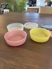 Set of 4 Vtg Pastel Tupperware Cereal Bowls Clear Lids Blue White Peach Yellow