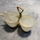 CONDIMENT CADDY 3 CUPS WITH LIDS 3 SPOONS - VINTAGE TUPPERWARE HARVEST GOLD/TAN