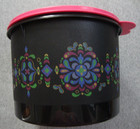 Vintage Tupperware Round Econo Canister Container 265-7 w/Lid Black Pink Floral