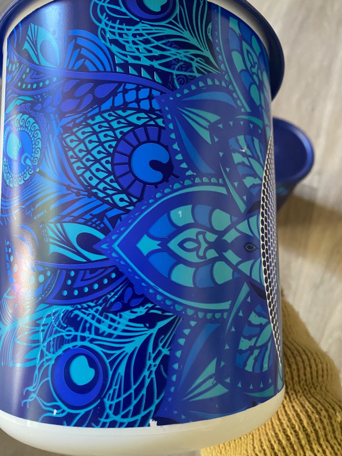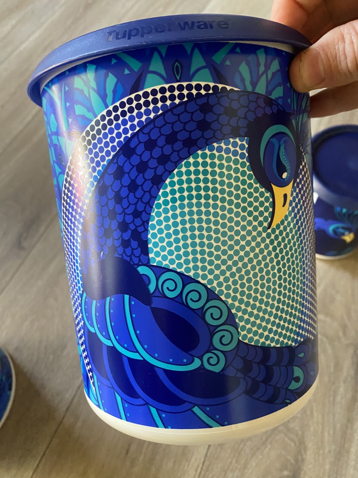 New Tupperware Beautiful One Touch “C” Canister 3.1L Peacock Theme