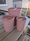 Tupperware 3 Pink Plastic Cylinder Food Storage Containers with Twist Off Lids