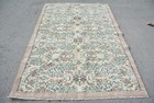 5,2x8,8 ft Vintage Turkish Rug, Large Rug, Brown White Floral Wool Rug