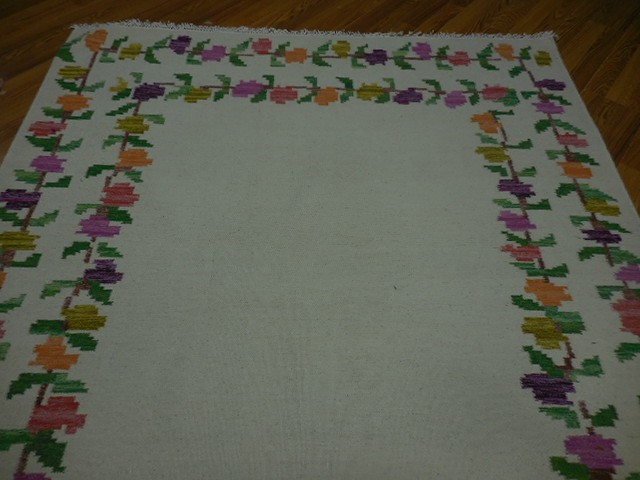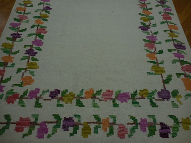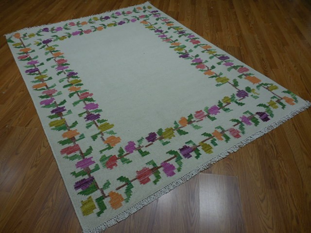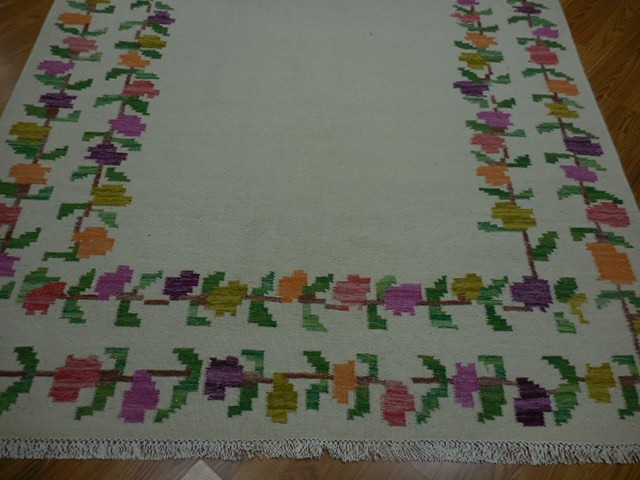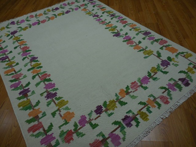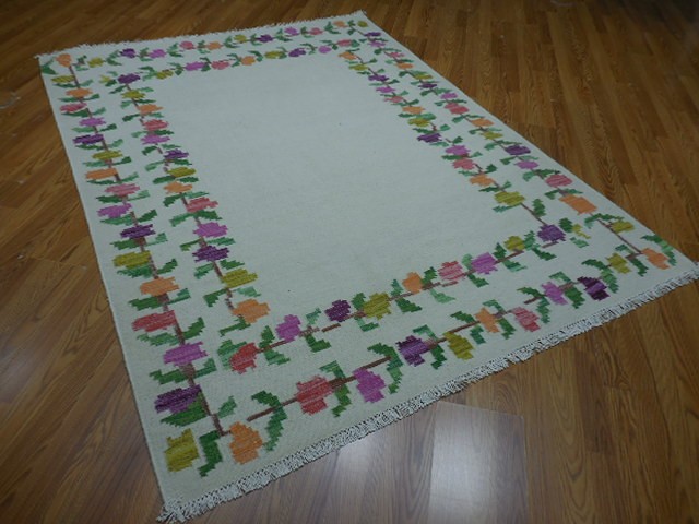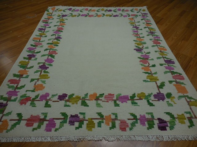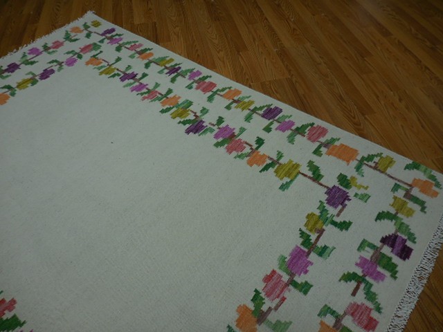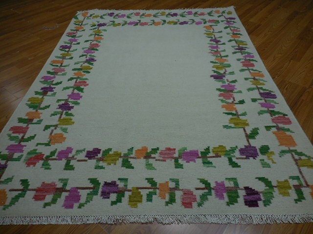 Turkish Oushak Rug, Flat Weave Rug,Handmade Bohemian Rug 5.6x7.6 Ft
