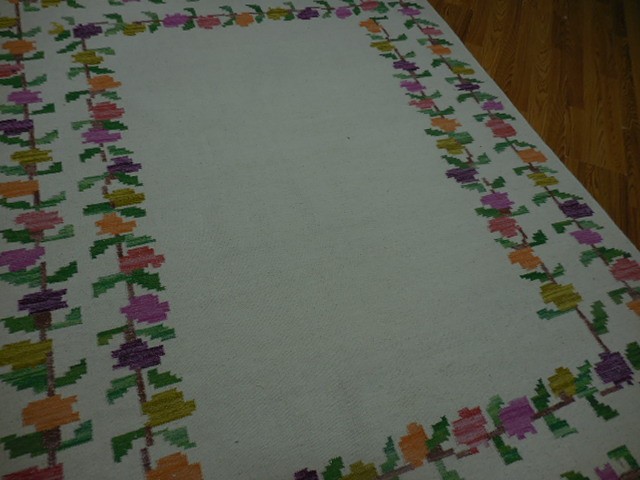 THIS VINTAGE TURKISH RUG WAS HAND MADE BY %100 WOOL IN TURKEY. THE APPROXIMATLY SIZE