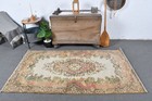 3,9x6,5 ft Rug, Turkish Vintage Rug, Brown Abstract Rug