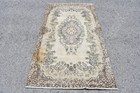 Turkish Area Rug 4x7,7 ft (122x236 cm), Vintage Beige Floral paisley Wool Rug