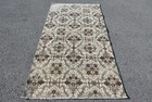 Turkish Vintage Rug, 3,8x6,7 ft Area Rug, Brown White Floral Wool Rug