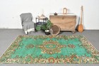 Turkish 4,9x8,4 ft Rug, Large Vintage Rug, Green Brown Polka dot Wool Rug
