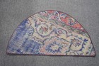 Vintage Turkish Rug, Round 2,5x1,5 ft (75x45 cm) Rug, Gray Floral Wool Rug