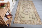 5,2x9,1 ft Turkish Rug, Vintage Rug, Beige Ikat Wool Rug