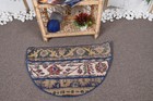 2,5x1,5 ft Vintage Round Rug, Blue Red Turkish Camouflage Wool Rug