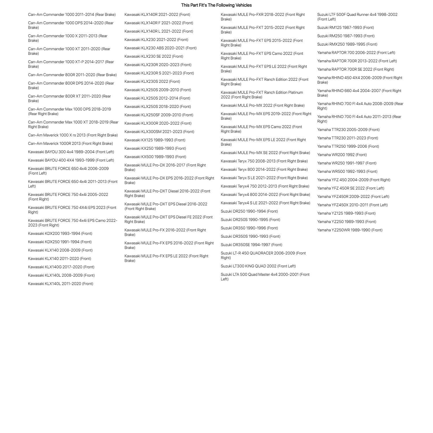 Tusk Brake Pad - Sintered Metal Rear Brake Front Right For Yamaha YFZ 450 2004-2009