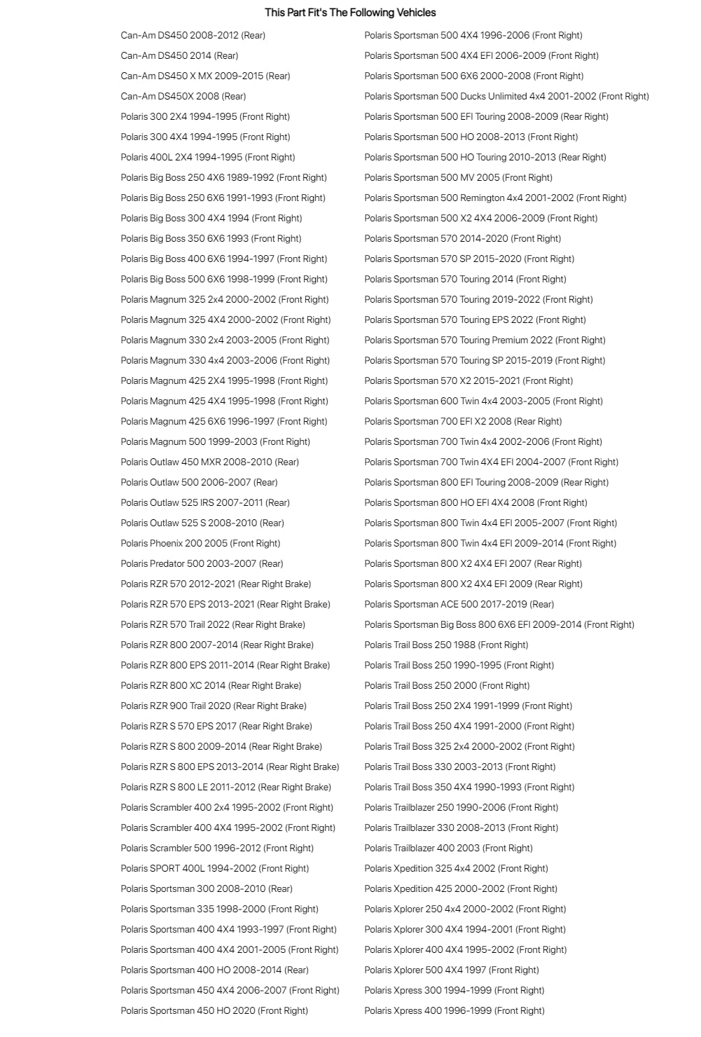 Tusk Brake Pad - Sintered Metal Rear Front Right For Polaris Sportsman 500 X2 4X4 2006-2009