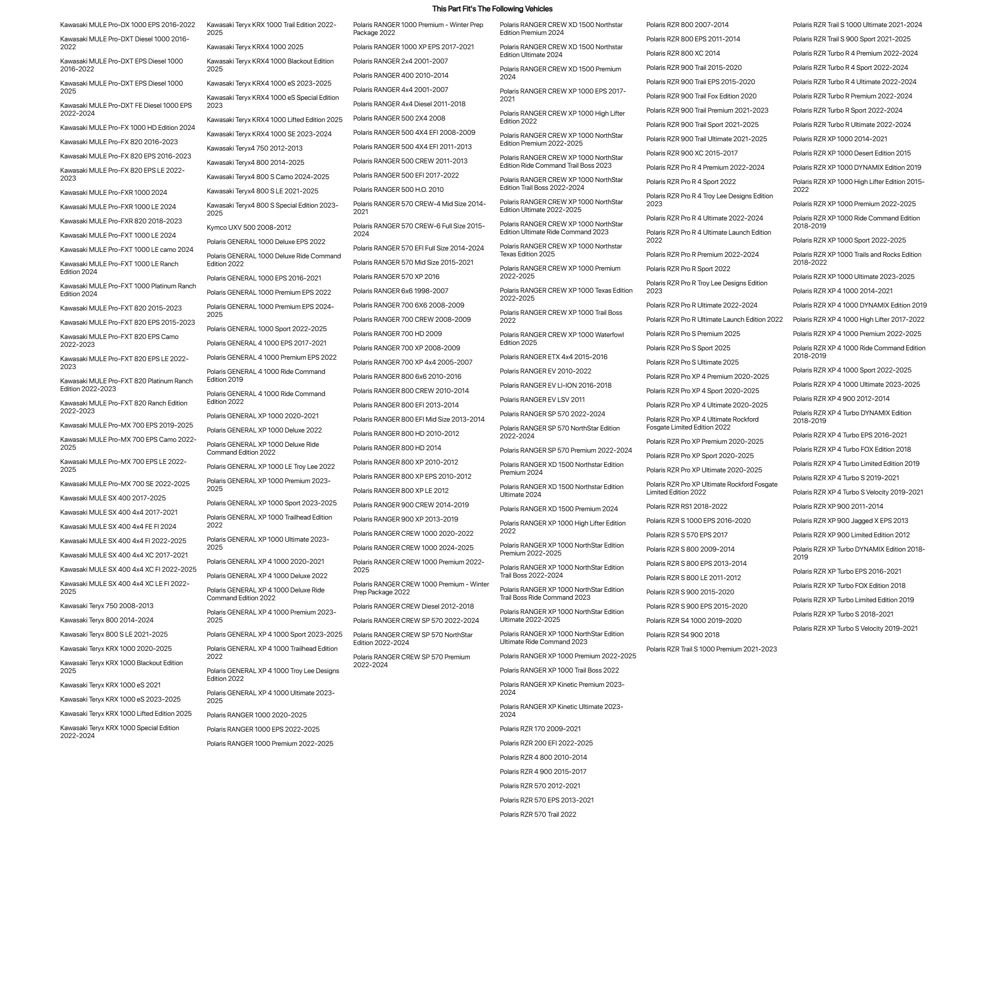 Tusk UTV Hand Holds For POLARIS RANGER 700 HD 2009