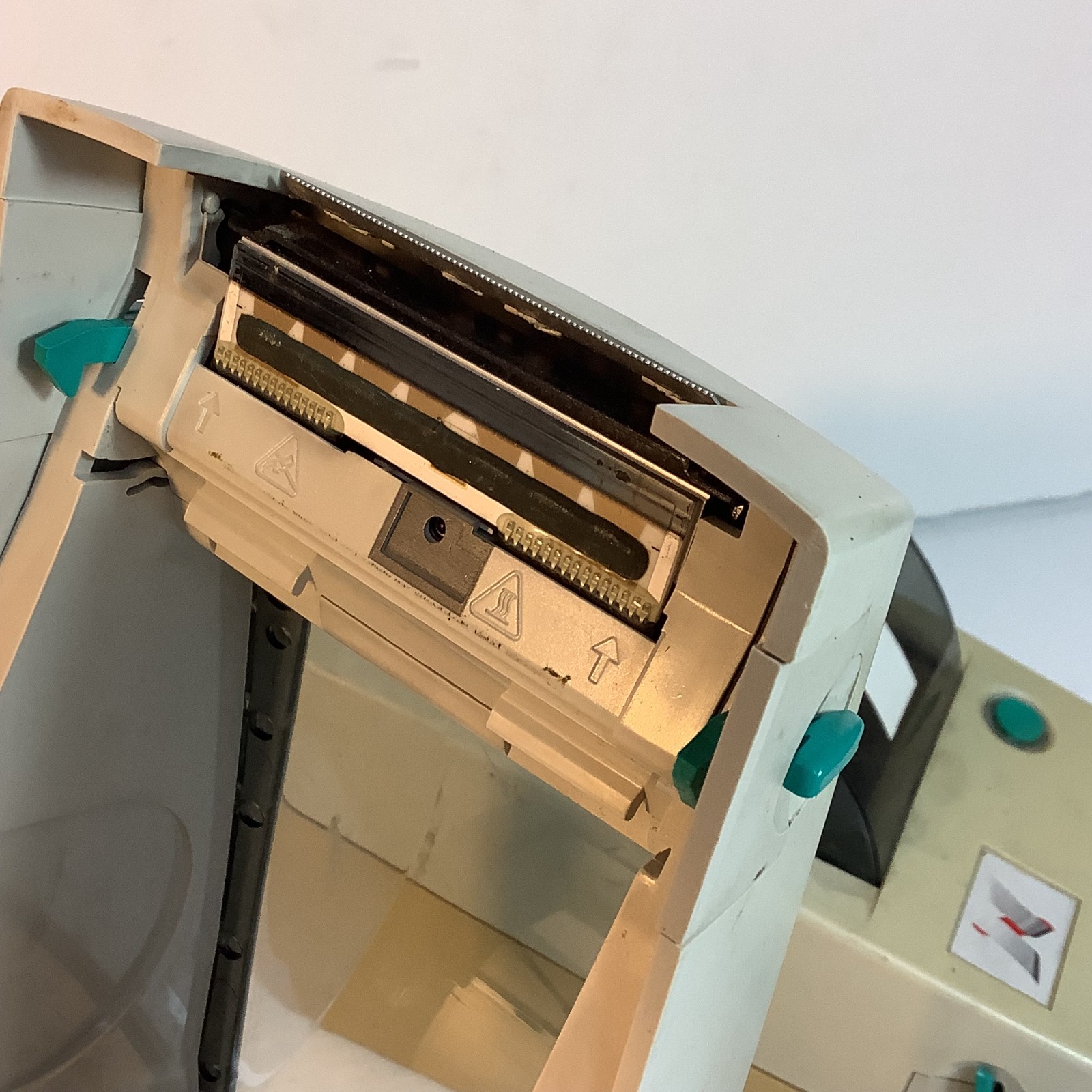 1 × Zebra LP2824 Standard Label Printer (yellowed plastic, missing cutter piece)