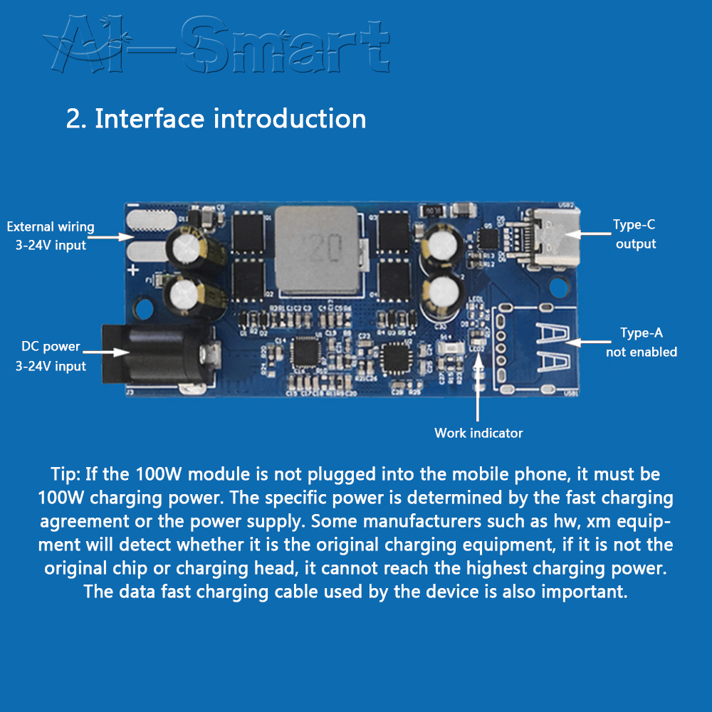 3. Type-C port output; the module can be used with a 3-24 volt power adapter to quickly charge the mobile phone daily, or it can be powered by batteries, solar panels, DC wind turbines, etc., one machine for dual purposes.