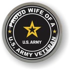 Emblem Car Sticker Chrome ROUND Bezel - Proud wife of a U.S. Army Veteran