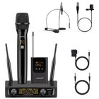 UHF Wireless Microphone System Set: Metal Cordless Handheld/Headset/Lavalier ...