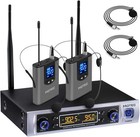 Dual Wireless Microphone System with Lapel Lavalier and Headset Microphones