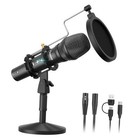 USB/XLR Podcast Dynamic Microphone, Studio Mic Kit with Volume Control, Shock...