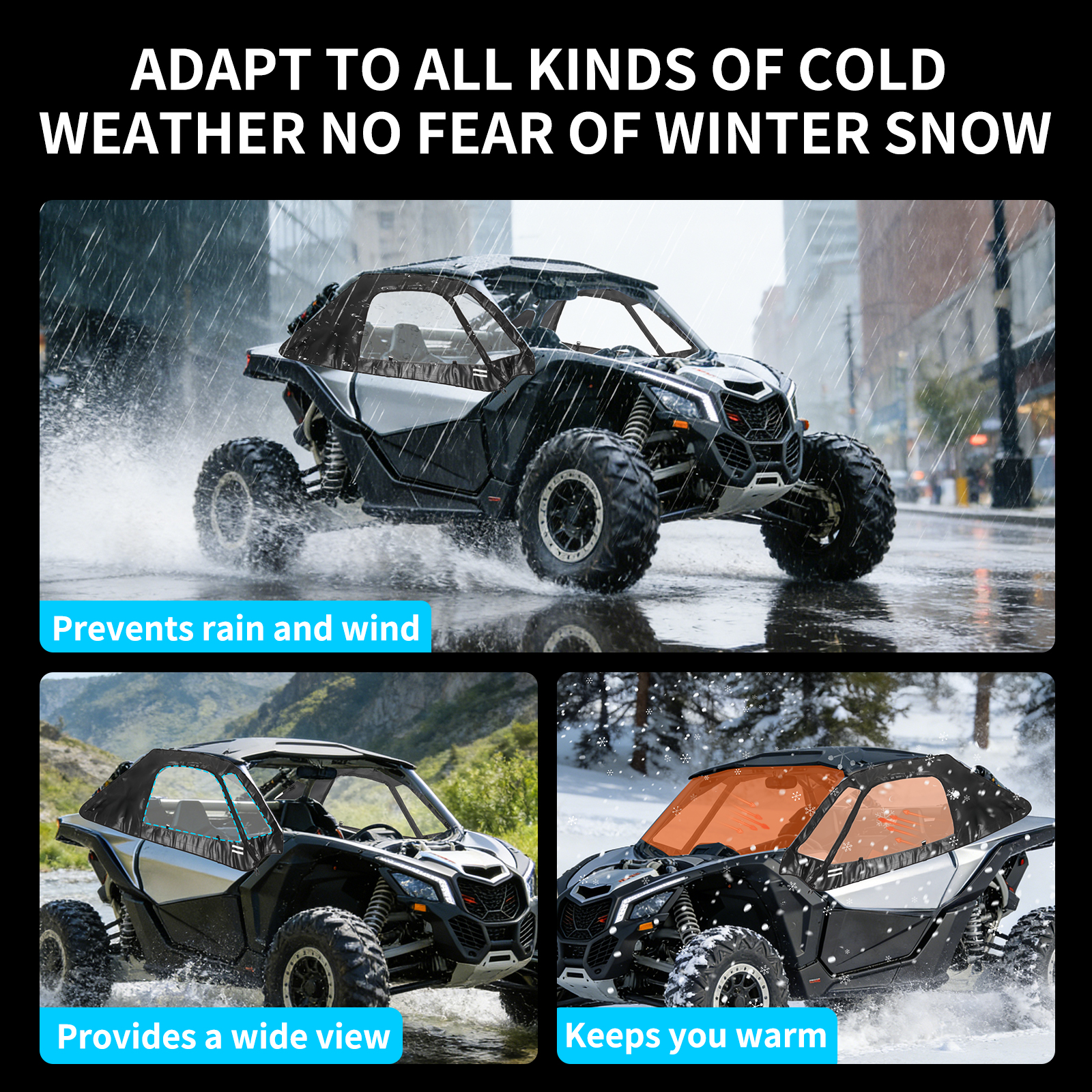 【Roller Blinder Design 】The soft upper door kit can be rolled down and secured with straps to improve ventilation; Additionally,