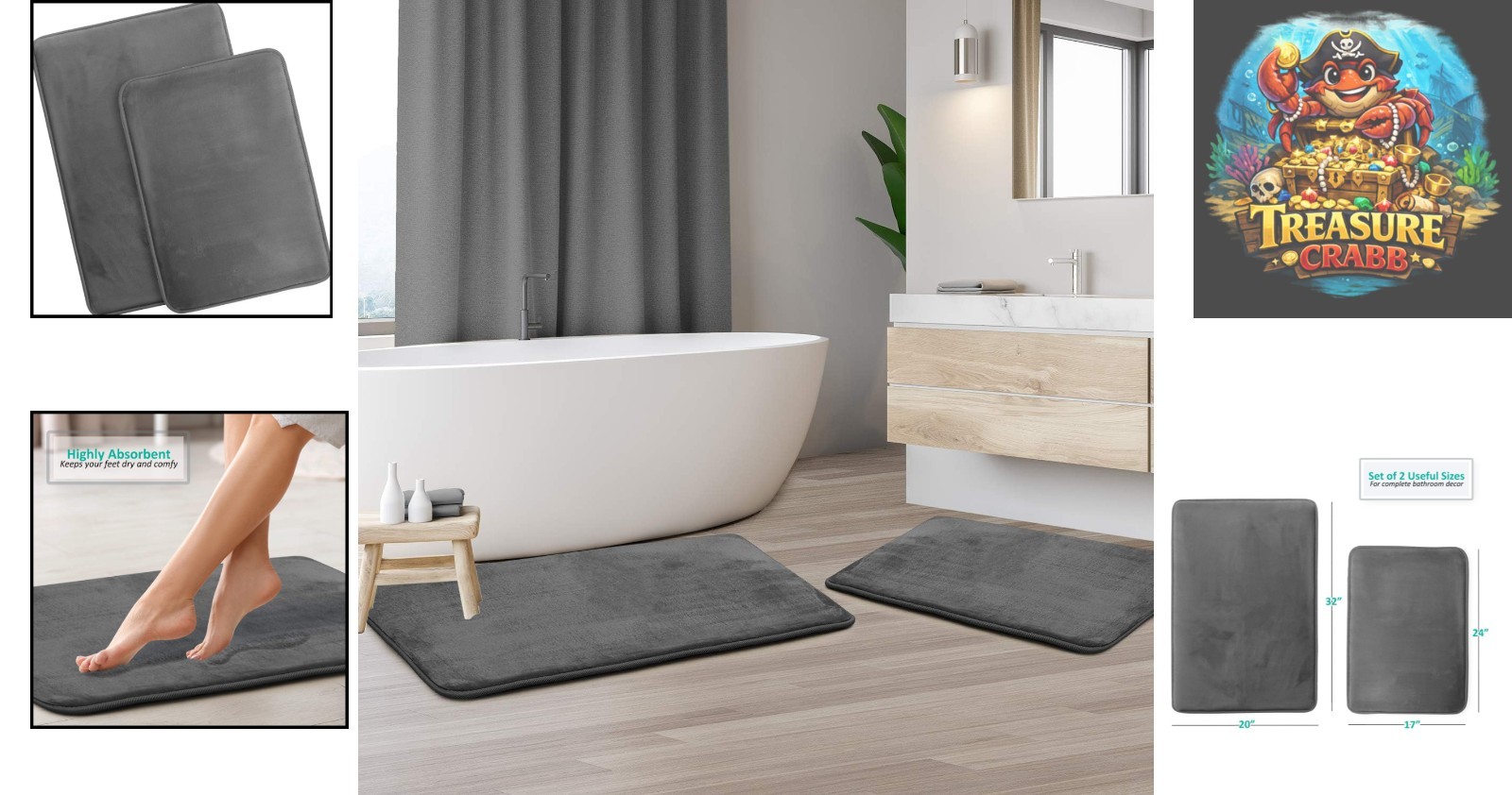 | Theme: Bathroom Decor | Type: Bath Mat | Color: Dark Grey | Number of Items in Set: 2 |
