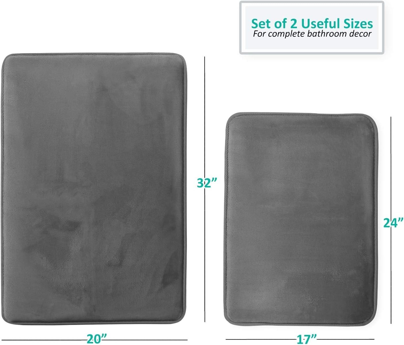 Ultra Soft Non-Slip Bathroom Rug Set - 2 Piece Memory Foam Quick Dry - Dark Grey