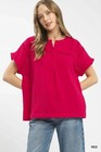 Umgee Textured Gauze Ruffle Neck Boho Top