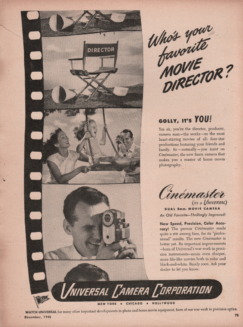 Universal Camera - Cinemaster Camera - Original Magazine Ad - 1945