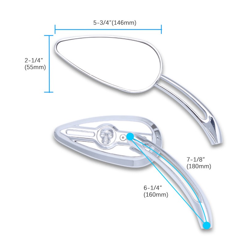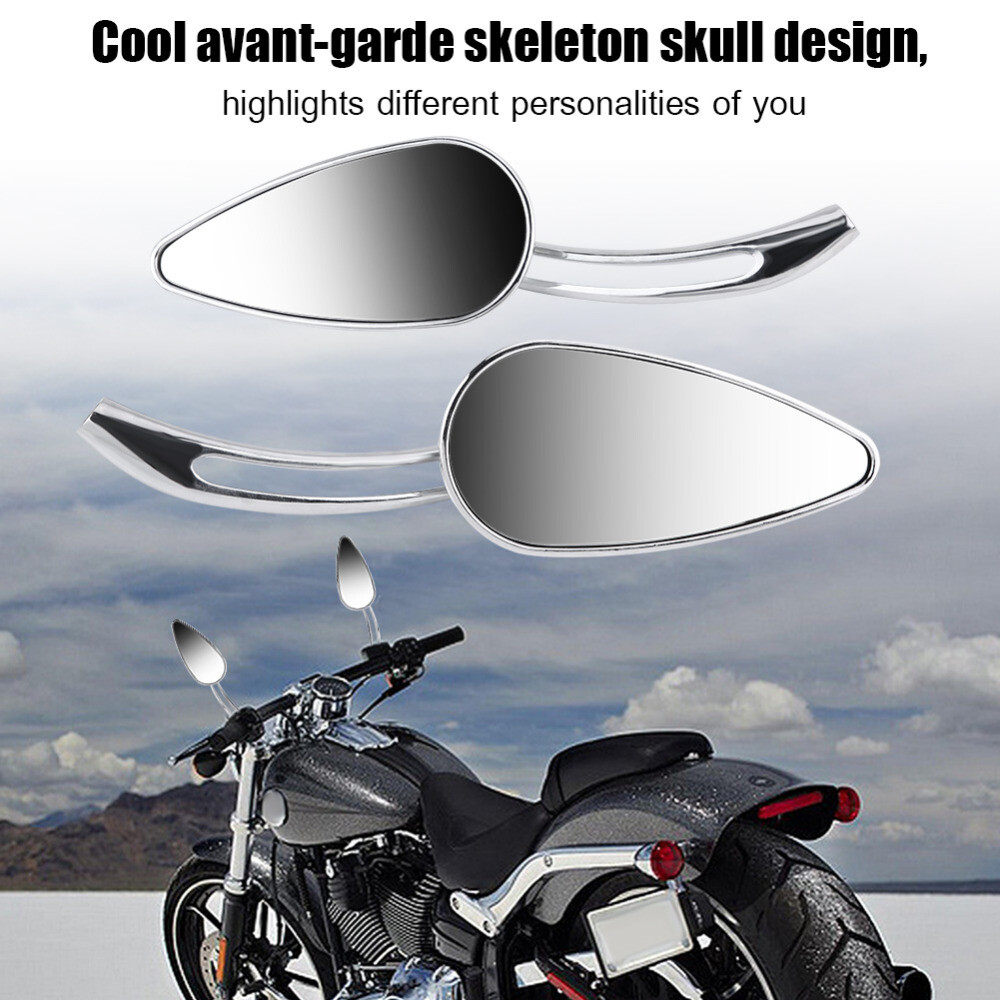 Chrome Rearview Side Mirrors Skull Teardrop for Harley Sportster Dyna Motorcycle