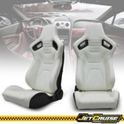 Universal Pair Reclinable Racing Seat + Dual Slider PU Carbon Leather White