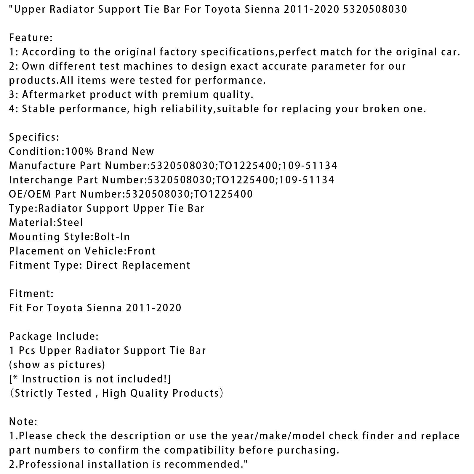 1 Pcs Upper Radiator Support Tie Bar