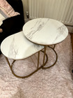 Set of 2 coffee tables, faux marble, white