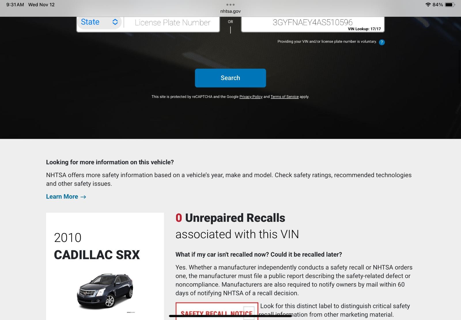 Used Front Center Interior Rear View Mirror fits: 2011 Cadillac Srx w/telematics