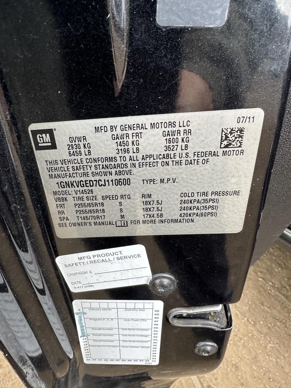2012 Chevrolet Traverse Left Tail Light Assembly - White, Used, 124K Miles