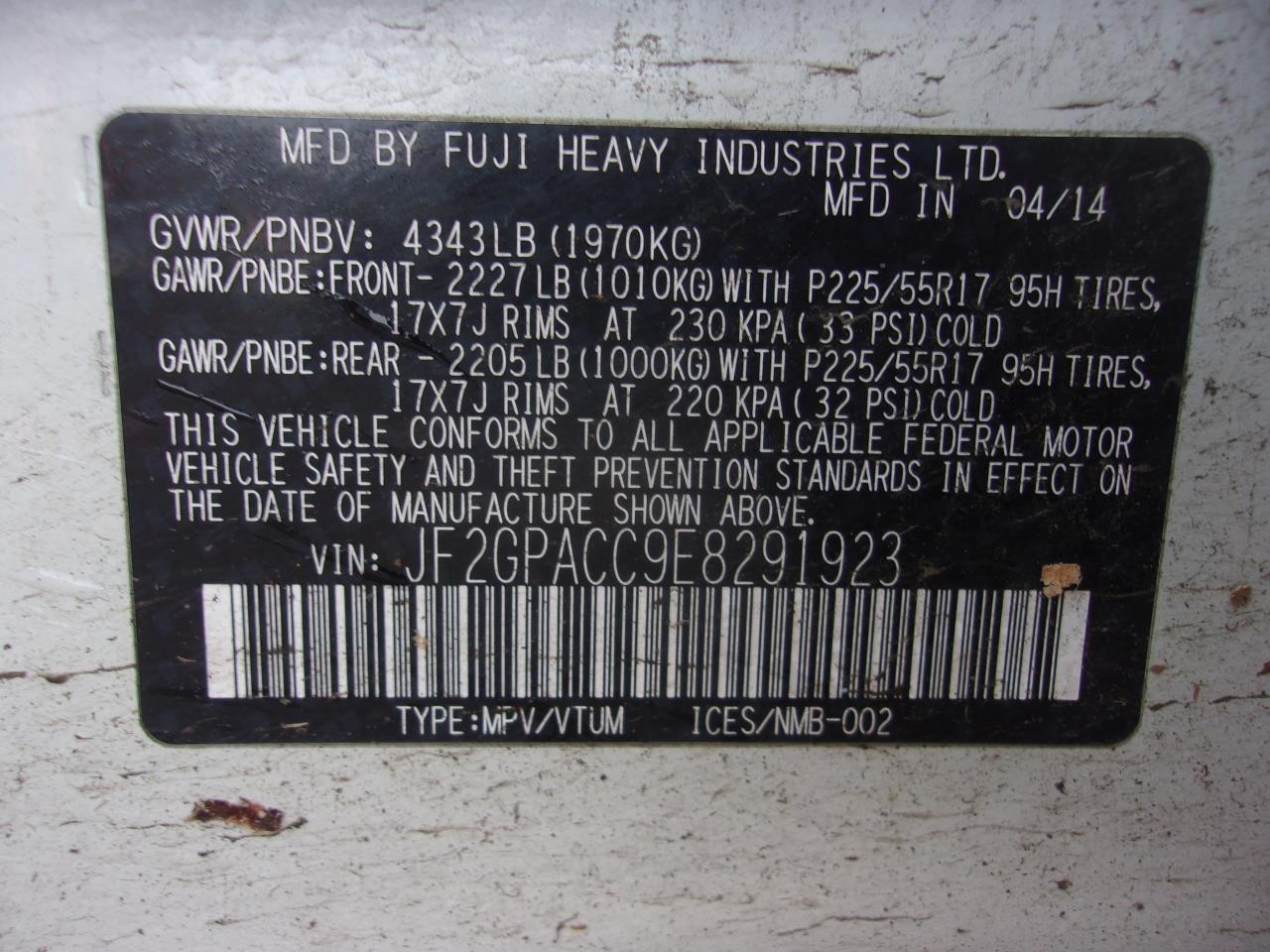 Used Rear Left Door Assembly Rear Side fits: 2014 Subaru Xv crosstrek electric w