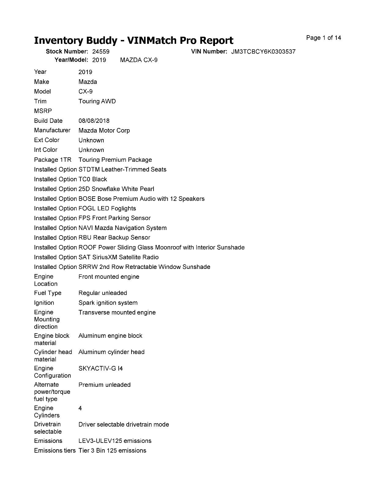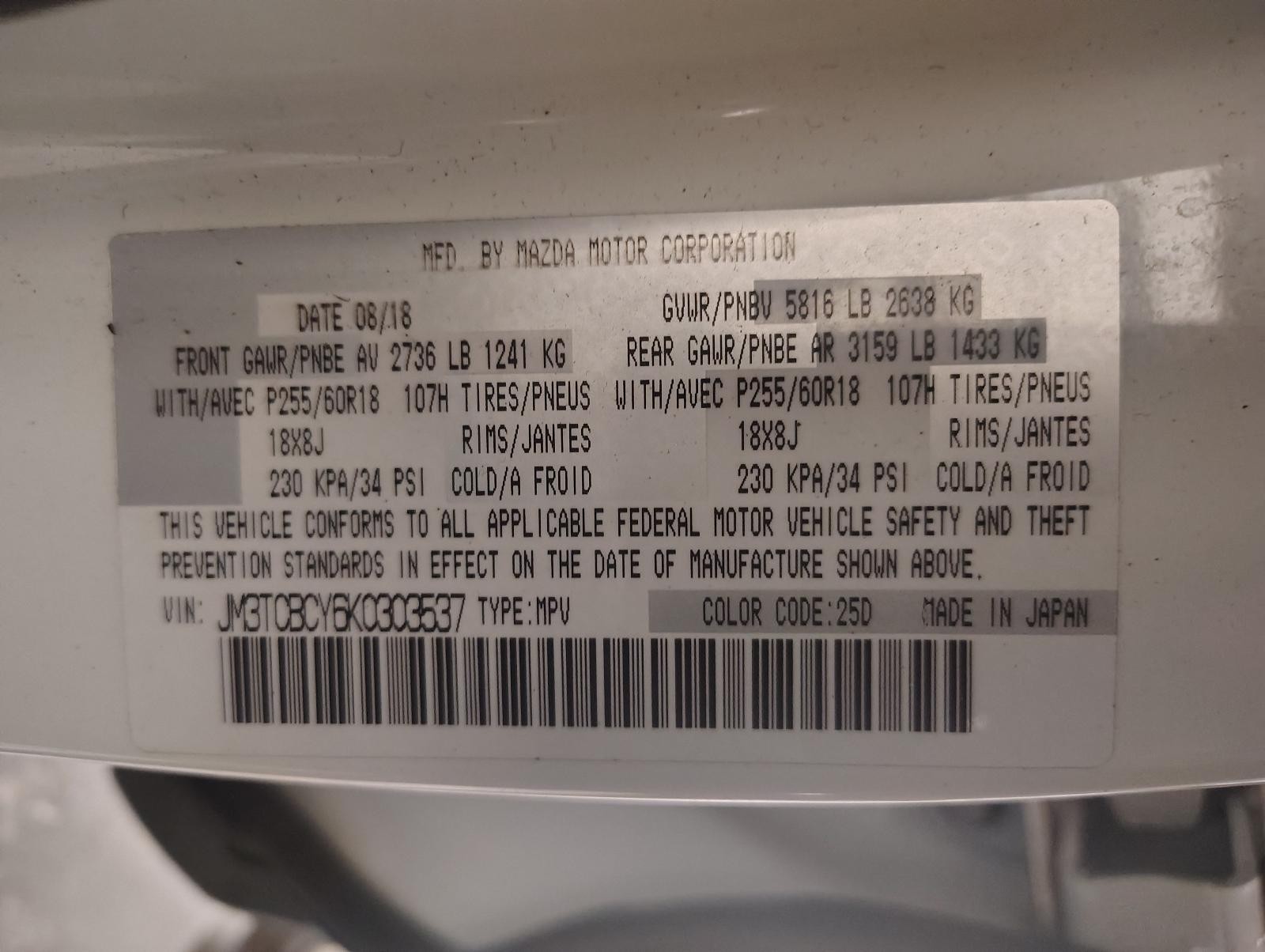 2019 Mazda CX-9 Used Rear Left Drive Axle Shaft 713069 AWD 83K Miles