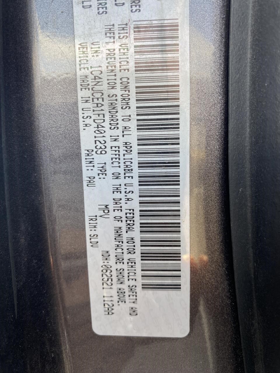Used Rear Right Door Interior Trim Panel fits: 2015 Jeep Compass Grade A