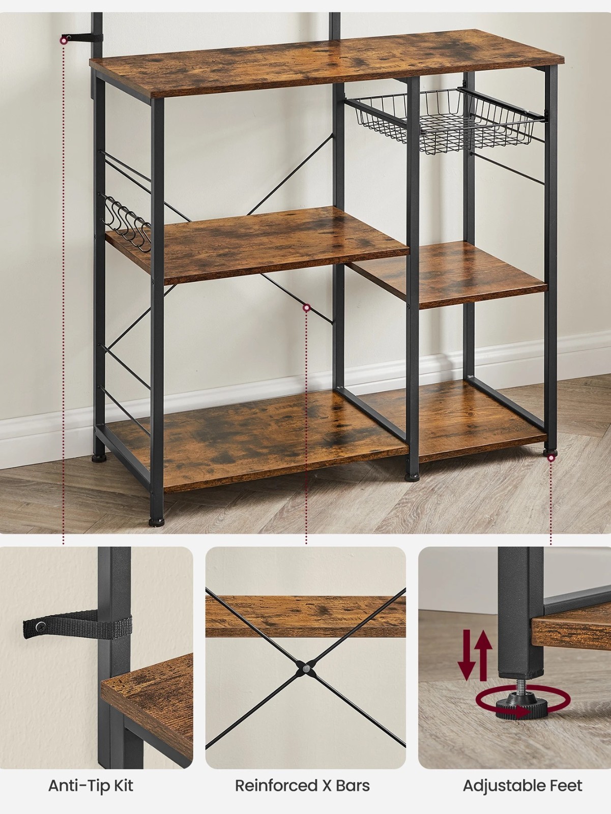 🪵 Industrial Chic Design: The classic VASAGLE rustic aesthetic adds a warm, vintage charm to any kitchen, pantry, or dining area.